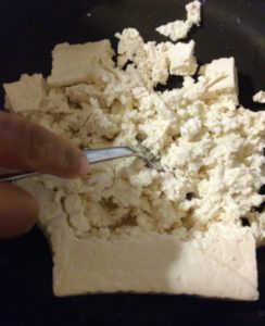 1. DRAIN THE WATER FROM TOFU 2.PLACE IN A PAN