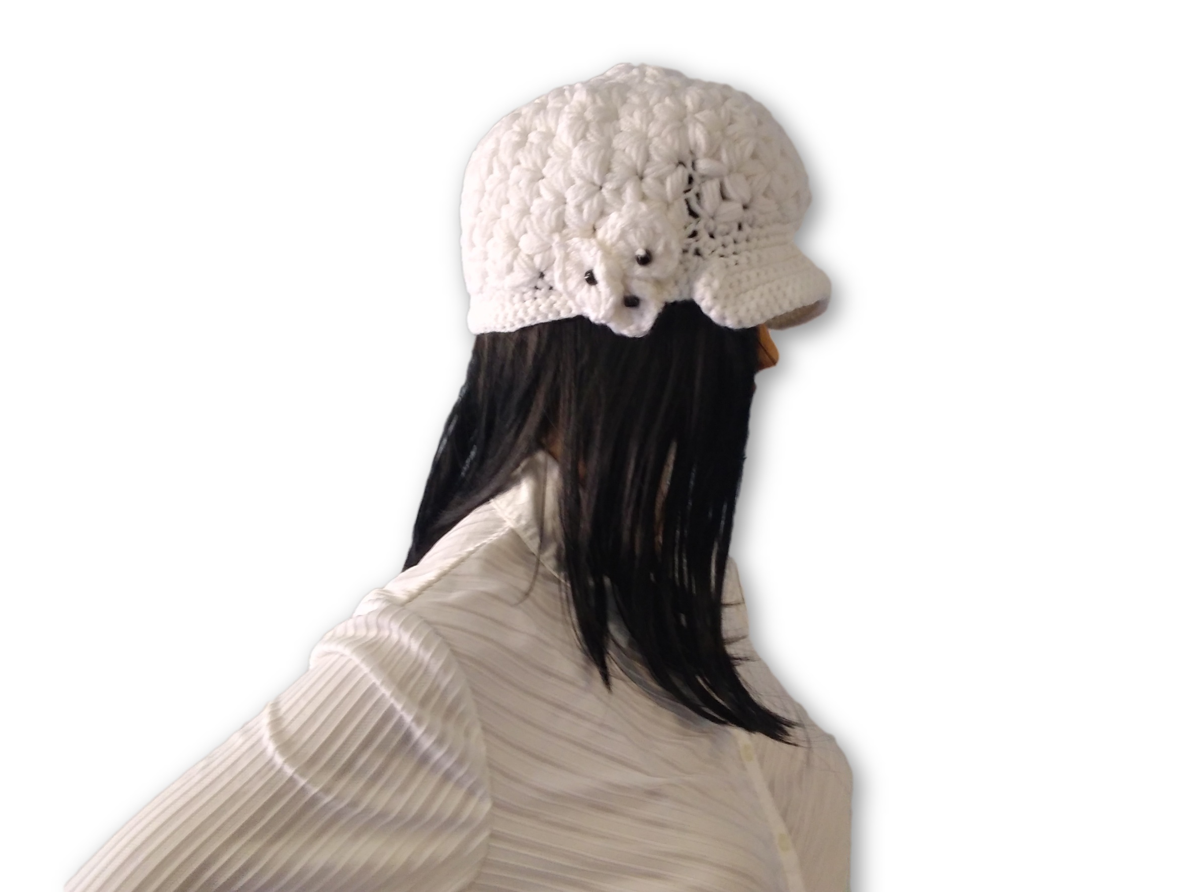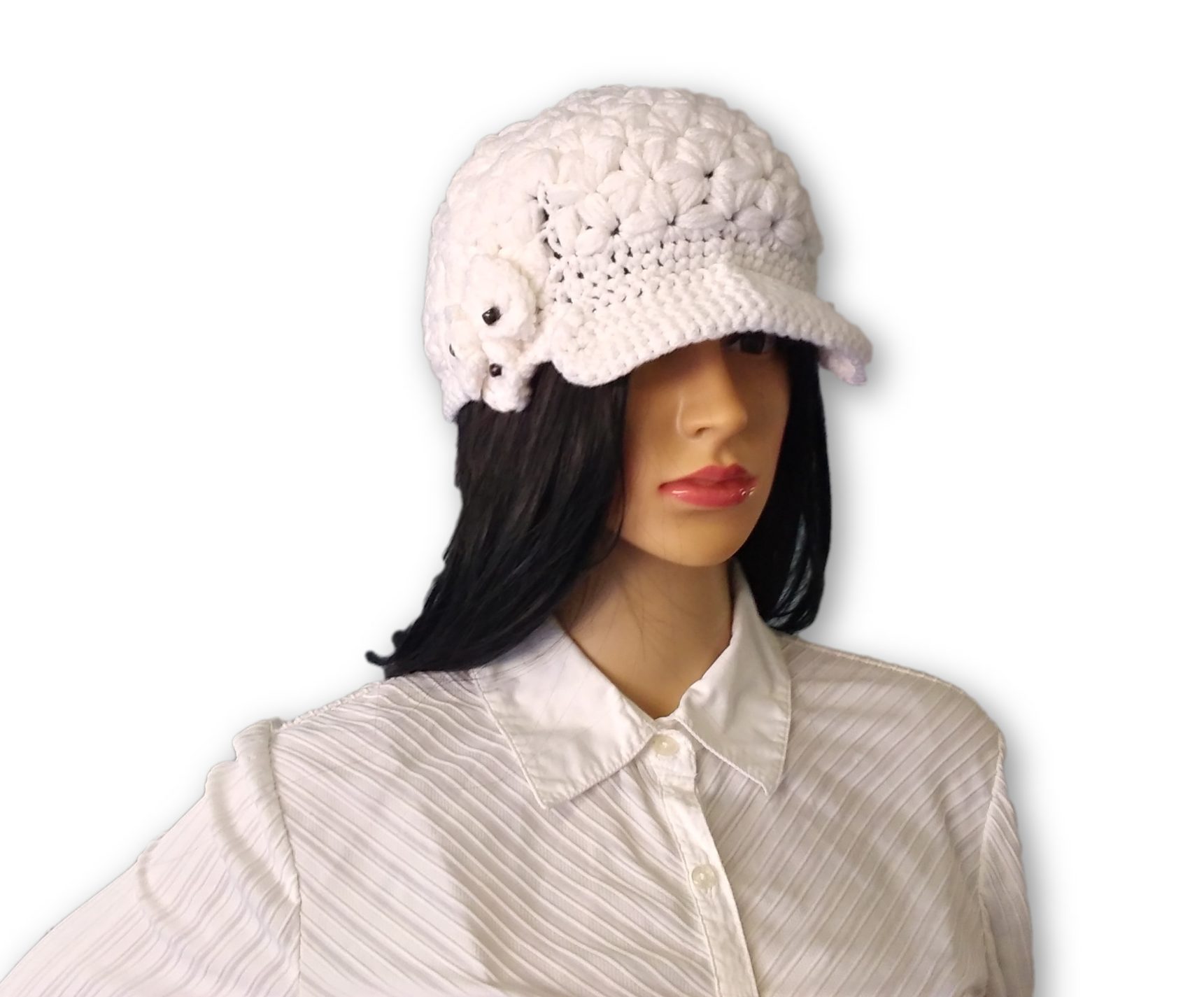 Looking for a unique gift? This white jasmine stitch crochet hat is perfect.