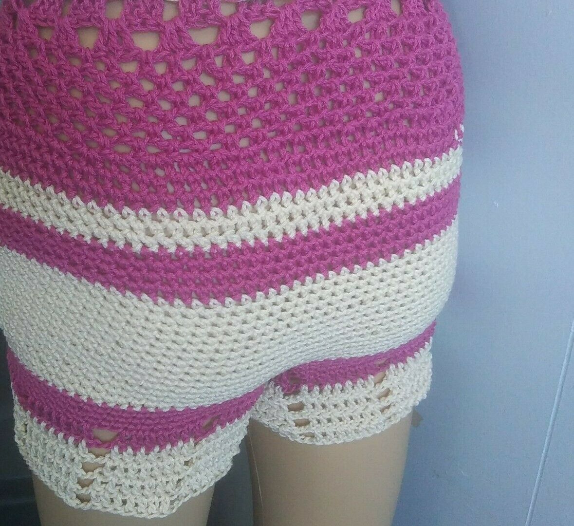 Crochet  and  shorts. Great for outdoors or indoors. High waited shorts, cute. Can be used for birthday gifts, holiday gifts or for any special occasions!
